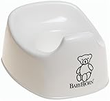 We started using this potty when our baby was about 9 months old. We aren't really pushing potty training, but letting him figure it out on his own. He started peeing in the potty the 2nd day we used it, and now does so regularly, though we have not had success with bowel movements yet. He seems comfortable on it, though he usually sits down and does his business and is done. Alot of times, the pee does hit the splash guard and spray around the potty, but this seems to happen with most potties- he is just not hold enough to aim. Our baby is 30 inches and about 25 pounds, and his legs are getting a bit long for this potty, so it is for the smaller child. Good function, good price.Get more detail about BABYBJÖRN Little Potty in White.